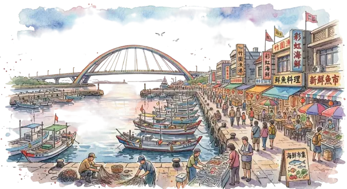 曾獲選為全國十大魅力漁港!以「現撈仔」海鮮拍賣聞名,觀光魚市內各式炸海鮮、烏魚子與在地小吃琳瑯滿目,...